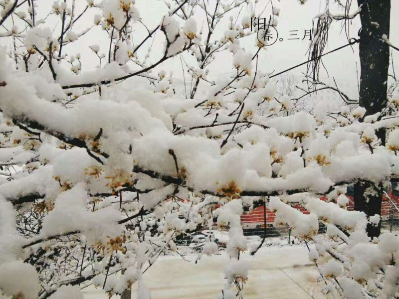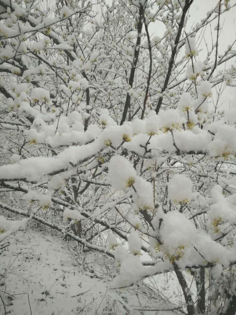 俗話說(shuō),“瑞雪兆豐年”,春雪總是那般溫和,輕輕地?fù)崦篱g的萬(wàn)物,而她又偏愛(ài)那枝頭初現(xiàn)的嫩芽,放眼望去,一落上雪就如同花團(tuán)錦簇,似鵝毛之輕,似棉花之軟,似梨花之白。讓人不禁驚嘆,大自然果然是妙筆生花。