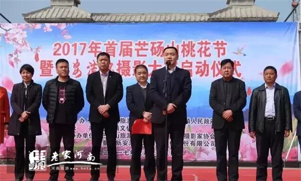 3月25日,2017年首屆芒碭山桃花節(jié)暨新安潔杯攝影大賽啟動儀式在芒碭山旅游區(qū)漢博苑廣場隆重舉行。永城市政府黨組成員、政府秘書長屈海波,永城市文化局局長謝貴軒,芒山鎮(zhèn)黨委書記蔣士林,芒山鎮(zhèn)鎮(zhèn)長謝亞及芒碭山旅游總公司總經(jīng)理魯玉等出席開幕式。