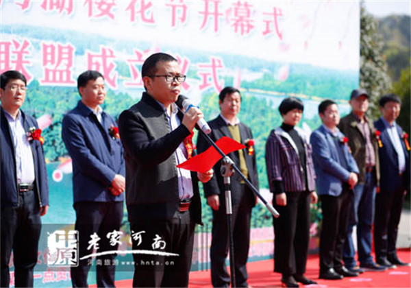 會議最后,信陽南灣湖風景旅游發(fā)展有限公司總經理楊繼云女士發(fā)表中原賞花聯盟成立宣言,并同多位代表按下啟動桿,同慶中原賞花聯盟的成立。
