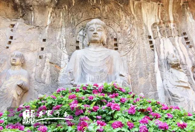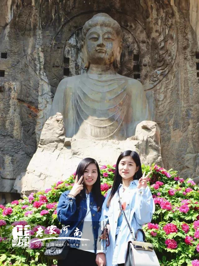 登上奉先寺,嬌艷欲滴的牡丹花如云似霞,美不勝收,把眼前的盧舍那大佛烘托得更為雍容華貴,層層疊疊里吐露著芬芳國色與美麗龍門說不盡的傳奇故事······