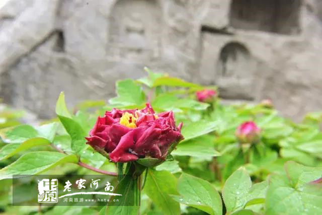 含苞待放的牡丹,伸伸腰、抬抬頭,即將展露出美麗的身姿,為石窟憑添了幾分柔美,構成了一幅色彩分明的水彩畫,使美麗龍門的每一個角落都洋溢著春天的氣息。