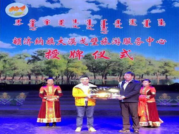 推介會上,額濟(jì)納旗旗委常委、政府副旗長孫興鈺為河南戶盟國旅總經(jīng)理陳學(xué)政授牌“額濟(jì)納旗大漠戈壁旅游服務(wù)中心”,標(biāo)志著首家可以承接全國戶外、自駕與旅游的專業(yè)服務(wù)機(jī)構(gòu)在額濟(jì)納旗入駐。