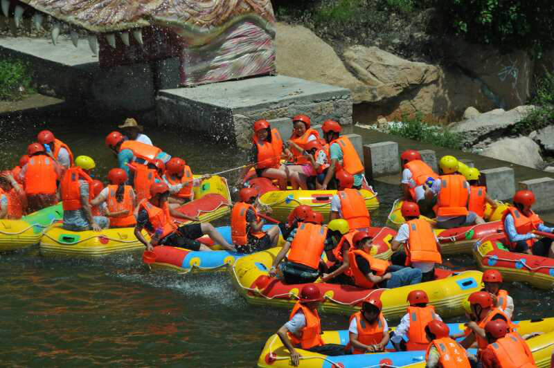 恐龍谷漂流位于汝陽(yáng)縣靳村鄉(xiāng)靳村河石寨至椿樹段,這里山水環(huán)繞,巨石巨崖造就出一條天然落差的最佳漂流河道。河道全長(zhǎng)約8公里,總落差168米,落差6米以上的有6處,最大落差達(dá)8米,連續(xù)落差可持續(xù)300多米。
