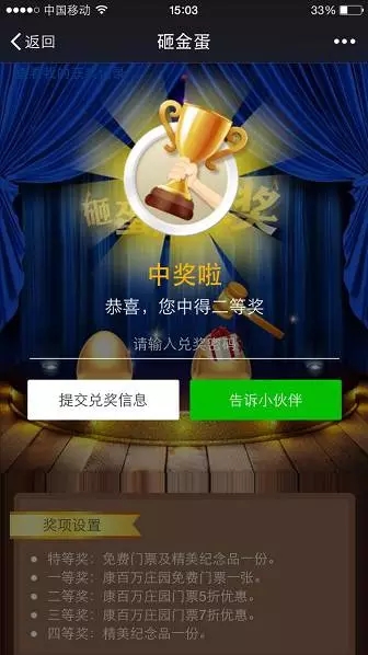 第三步:停留到兌獎頁面,需到康百萬由工作人員輸入兌獎碼兌換相應(yīng)獎品