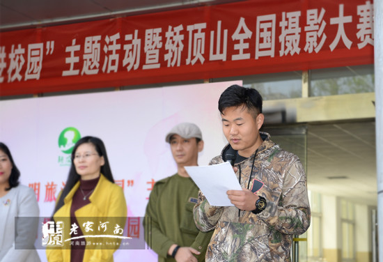 轎頂山景區(qū)總經(jīng)理張輝介紹轎頂山景區(qū),并對(duì)轎頂山攝影大賽校園巡回展作簡(jiǎn)要說(shuō)明。