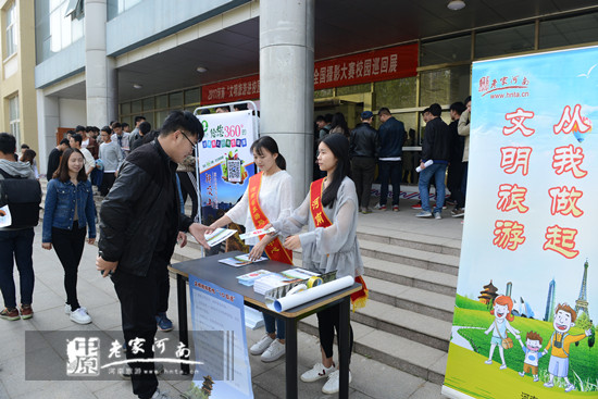 此外,活動(dòng)現(xiàn)場(chǎng)還發(fā)放了文明旅游宣傳手冊(cè)并舉行了轎頂山攝影大賽校園巡回展,通過(guò)50余幅攝影作品,充分展示轎頂山景區(qū)的優(yōu)美風(fēng)光,吸引了大批師生觀看。