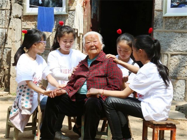 活動(dòng)間隙,小志愿者們與農(nóng)家小院的奶奶親熱的聊天