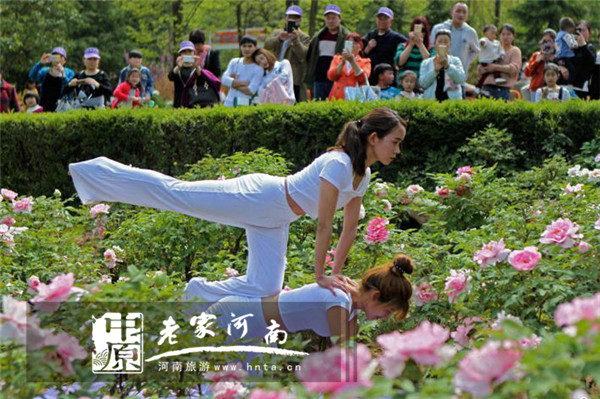 4月22日,一場“瑜伽秀”與“千人宴”旅游活動(dòng)在洛陽欒川雞冠洞景區(qū)舉行,萬名游客歡聚一堂,在雞冠洞景區(qū)優(yōu)美如畫的高山牡丹園與地質(zhì)奇觀之間,共游高山牡丹園和地下溶洞美景,共嘗欒川特色美食,為雞冠洞高山牡丹賞花季暨夜游雞冠洞拉開了序幕。