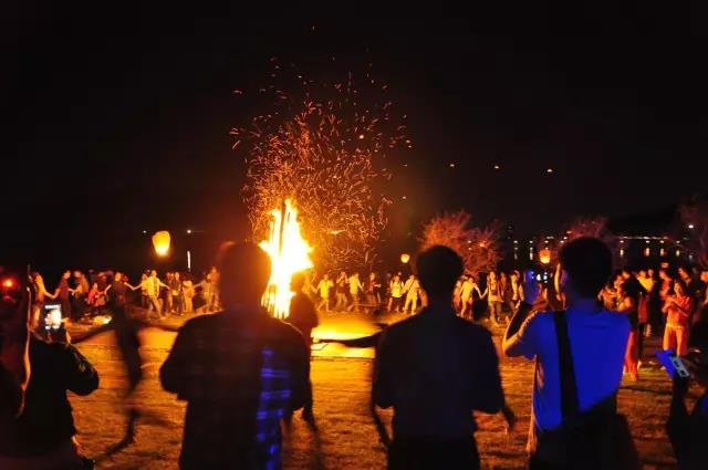 火焰沖天,映紅每個人的臉,點燃每個人心中的激情,讓我們手拉手跳起來,感受古寨夜晚的別樣風情。