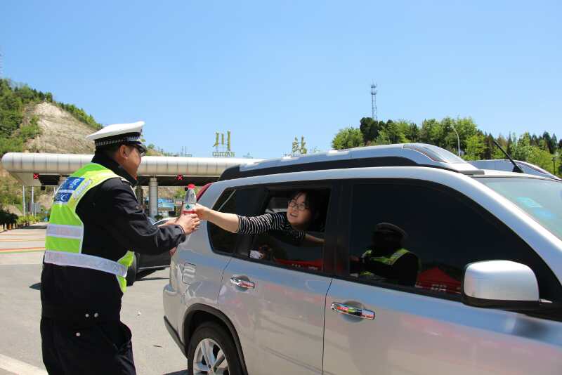 4月29日,五一小長(zhǎng)假第一天,洛陽欒川天高云淡,風(fēng)清氣爽。上午11點(diǎn)洛欒高速欒川下站口迎來客流高峰,來自全國各地的旅游車輛開始排起長(zhǎng)龍等待下站,一時(shí)間高速出口車滿為患。在車流中兩位交警同志的身影格外引人注意,他們不停的穿梭于車流中,指揮交通,疏導(dǎo)車輛,并認(rèn)真解答著游客詢問,保證了高速下站口的交通通暢。晴朗的天氣給游客來帶開心的同時(shí),也給交警同志的身體增加了負(fù)擔(dān),汗水浸濕了制服,喉嚨已經(jīng)沙啞。這時(shí),一輛從交警身邊經(jīng)過的車輛放慢了車速,車窗搖下一位游客為正在執(zhí)勤的交警同志送上了一瓶純凈水,并溫暖的說了聲“交警同志您辛苦了”,這時(shí)的交警同志雙手接過純凈水并回敬了一個(gè)軍禮表示感謝。這樣感人的一幕被我們前方記者敏銳的捕捉到,經(jīng)了解,為交警同志送水的游客來自鄭州,“大老遠(yuǎn)就看到交警一直在前方疏導(dǎo)交通,慢慢走近后聽到交警的聲音已經(jīng)有些沙啞,看到額頭和鬢角上滲出的汗珠,當(dāng)時(shí)也是被感動(dòng)了,就想著為這些節(jié)假日依然堅(jiān)守崗位的人民公仆送上一瓶水表達(dá)謝意”這位游客說到。