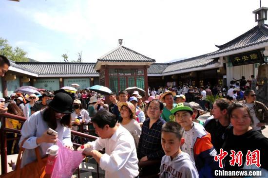 游客在少林寺武術(shù)館演武廳前有序排隊(duì)等候