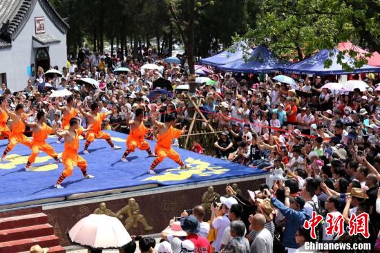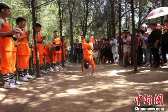 少林弟子與游客現(xiàn)場(chǎng)互動(dòng),展示少林功夫