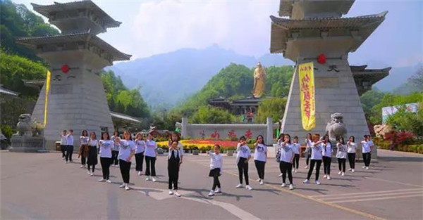 活力妹子老君山上耍“快閃” 倡導(dǎo)文明出行新方式