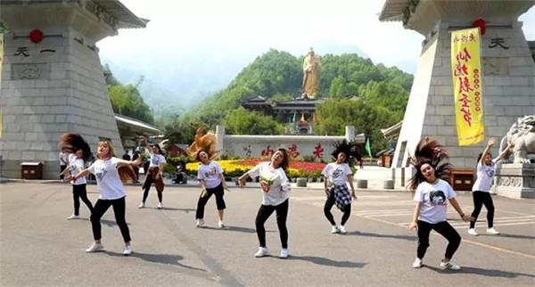 5月1日,五一小長假第三天,河南老君山景區(qū)。三十余名妙齡女子在平陽廣場集體耍快閃。在大秀激情魅力的快舞同時,以年輕人特有的方式倡導(dǎo)全社會“文明記心中,文明旅行、文明出游從我做起!”