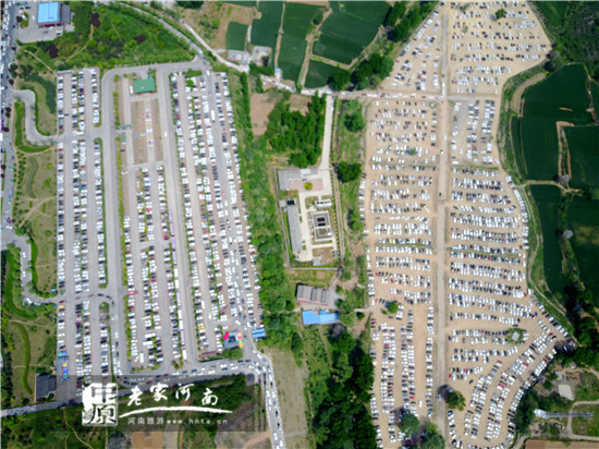 (圖:500米高空拍攝下的少林景區(qū)停車場)