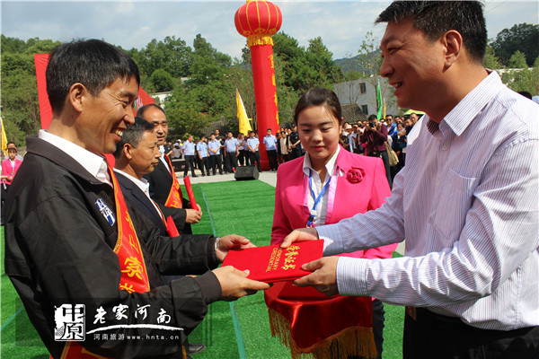 欒川縣委書記董炳麓向老君山開發(fā)建設(shè)有功人員頒獎