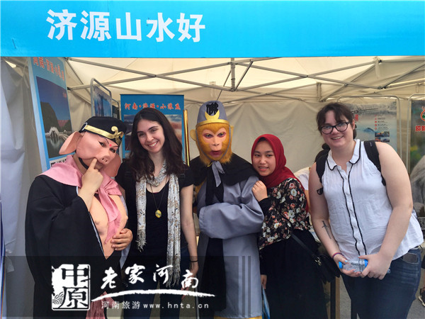 在濟(jì)源旅游的展臺(tái)前,來(lái)參觀、咨詢(xún)的市民絡(luò)繹不絕,工作人員給前來(lái)咨詢(xún)的游客發(fā)放宣傳資料,并耐心解答。來(lái)自五龍口的美猴王、豬八戒更是吸引了眾多市民的眼球,都爭(zhēng)先恐后地和美猴王玩起了自拍,連國(guó)際友人也忍不住走上前去與美猴王合影一番。