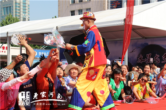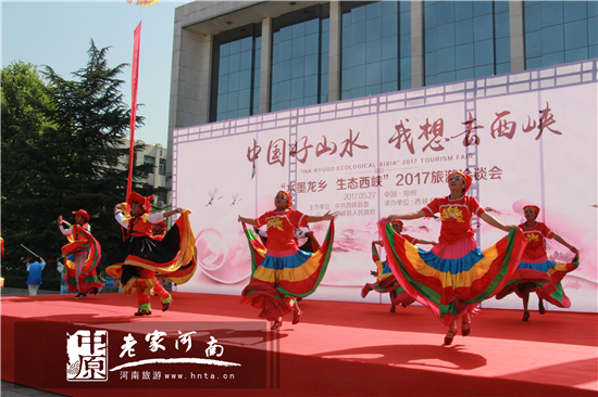 活動現(xiàn)場,西峽縣旅游局為鄭州廣大市民帶來了一場極具西峽特色旅游文化的節(jié)目表演。《龍鄉(xiāng)太極韻》、《西峽美》、《伏牛真!泛屠辖鐜X景區(qū)的佤族蹈表演等精彩節(jié)目吸引了現(xiàn)場市民。