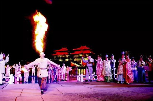《大宋·東京夢(mèng)華》是以八闋經(jīng)典宋詞和一幅《清明上河圖》串聯(lián)的畫面,展示了北宋王朝繁榮昌盛的景象。整個(gè)演出在清明上河園皇家園林的景龍湖上,充分利用了亭臺(tái)樓榭、水系廊橋,構(gòu)成了一個(gè)完整的古典實(shí)景劇場,并運(yùn)用大量的科技手段,制造出夢(mèng)幻般的效果,將精心選擇的北宋印象包含進(jìn)去,把人們的記憶拉向一千年前的那個(gè)輝煌朝代,以喚起一個(gè)民族對(duì)興衰的思考和渴望崛起的激情。