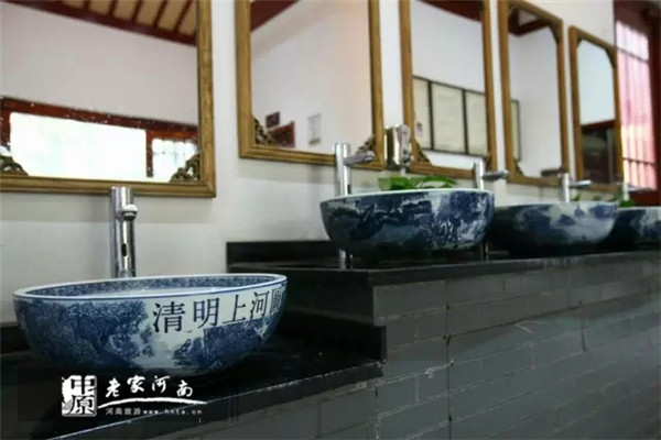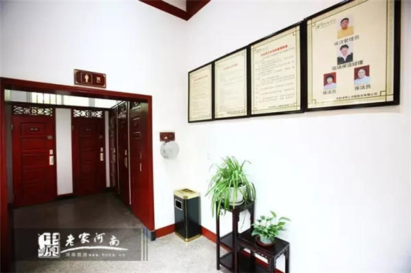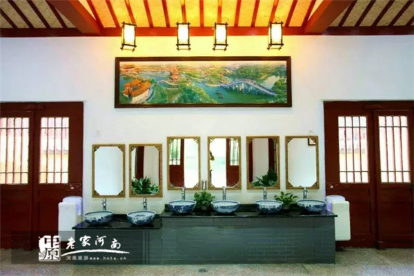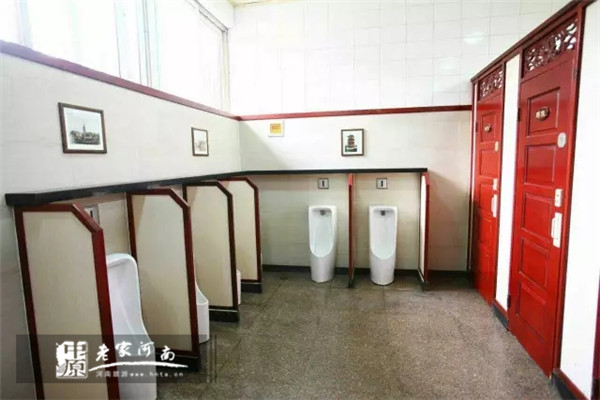 彰顯衛(wèi)生間文化特色進(jìn)一步對衛(wèi)生間環(huán)境進(jìn)行美化,為游客帶來更舒適溫馨的體驗:景區(qū)使用古色古香的紅木雕花門板替換原有普通復(fù)合門板;同時定制極具文化特色的青花瓷座上盆;增設(shè)花木博古架;懸掛園區(qū)風(fēng)景、節(jié)目裝飾畫、游客文明入廁溫馨提示,大大提升了衛(wèi)生間文化特色。