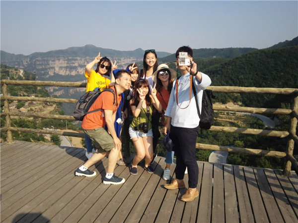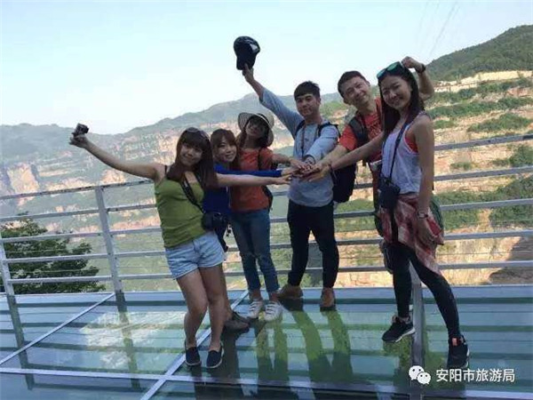愛在大峽谷,相約一起嗨!臺灣旅行社精心組織了14名旅游達(dá)人分為兩組來到太行大峽谷進(jìn)行考察旅游,行程人員囊括了旅行社專案經(jīng)理、專案策劃、產(chǎn)品部主任、臺灣業(yè)界媒體記者以及幾位評選出的旅游達(dá)人。他們從吃住行游購?qiáng)实榷鄠方面考察了太行大峽谷的旅游市場。