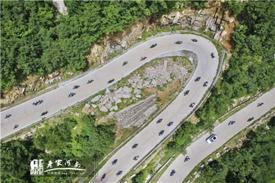 五朵山盤山公路全長(zhǎng)23公里,其中8公里的連續(xù)彎道,騎士們?cè)?5分鐘內(nèi)成功穿越。