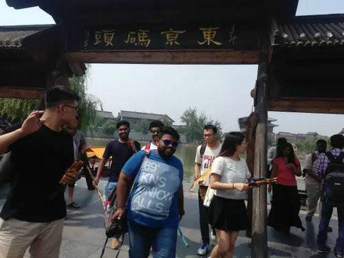 6月19日上午,一陣異域之風(fēng)襲來(lái),為滿園的宋韻增添了別樣的風(fēng)景。由印度的帥哥、美女組成的交流訪問(wèn)團(tuán)慕名前往開(kāi)封清明上河園。
