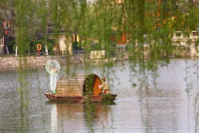 坐著游船蕩舟汴河,行船劃開汴河之水,留下一道道波紋,微風(fēng)拂動細柳,剛好掩映著飄來的小船,一切都顯得那樣的恰到好處。