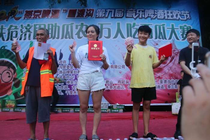 通過激烈角逐, 2017年重渡溝萬人吃西瓜大賽的男女 “瓜王”脫穎而出,贏得豐厚現(xiàn)金大獎。