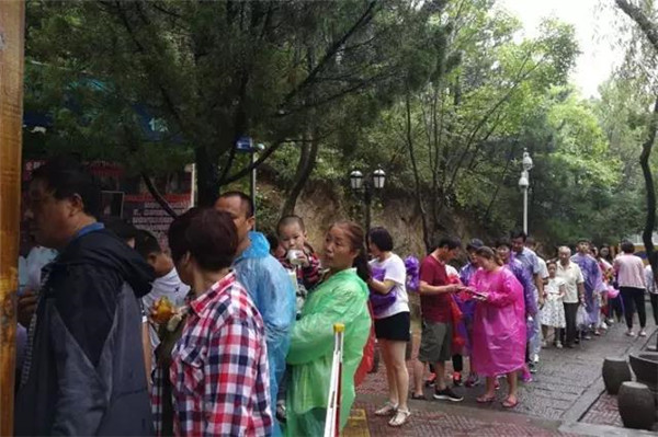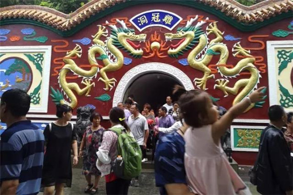 從早上八點開始,到達雞冠洞景區(qū)的游客絡(luò)繹不絕,十點鐘左右出現(xiàn)旅游小高峰!