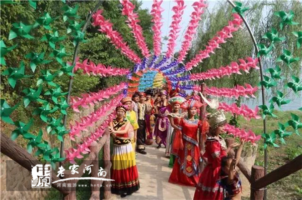 來(lái)自江蘇、湖北、山東、山西、安徽、鄭州等省內(nèi)外的旅游團(tuán)隊(duì),戶外拓展團(tuán)隊(duì)、培訓(xùn)團(tuán)隊(duì)、夏令營(yíng)等省內(nèi)外游客興致勃勃的徜徉在風(fēng)車長(zhǎng)廊,駐足觀賞、合影留念;或與少數(shù)民族演員一起翩翩起舞、一展歌喉;或置身竹排之上,感受水的柔情與浪漫;或坐在3D影院觀看3D電影;或參與龍舟競(jìng)渡,體驗(yàn)在國(guó)際龍舟競(jìng)賽基地劈波斬浪的刺激和豪邁。最興奮的當(dāng)數(shù)夏令營(yíng)的孩子們,他們像出籠的小鳥,飛向水上大舞臺(tái),有的觀看少數(shù)民族演員的絕活表演;有的和少數(shù)民族演員、傣族的阿哥阿妹們相互潑水狂歡,玩得如癡如醉、流連忘返。