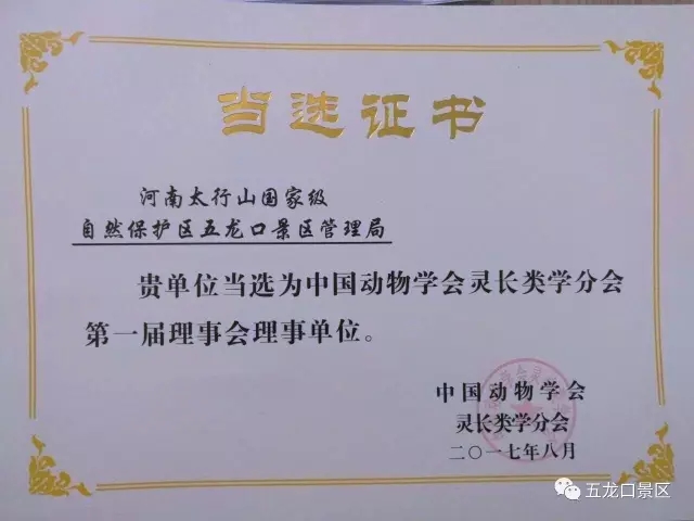 2017 年8月19日—21 日,中國(guó)動(dòng)物學(xué)會(huì)靈長(zhǎng)類學(xué)分會(huì)成立大會(huì)在西北大學(xué)召開(kāi),濟(jì)源市文旅集團(tuán)五龍口景區(qū)應(yīng)邀參加此次會(huì)議,經(jīng)在座的國(guó)內(nèi)外數(shù)十位靈長(zhǎng)類專家投票,我單位獲選為第一屆理事會(huì)理事單位。