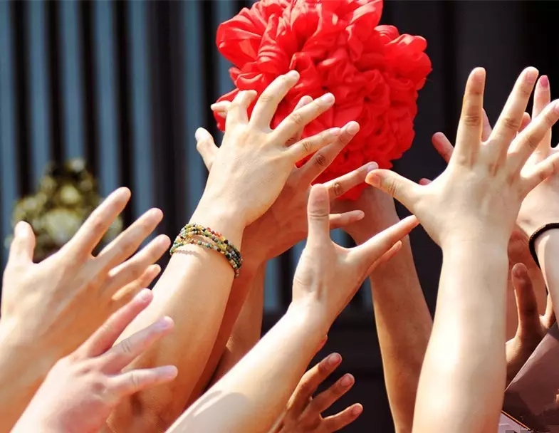 接到繡球者可與對(duì)應(yīng)的拋繡球仙女牽手,舉辦七仙女集體婚禮,體驗(yàn)獨(dú)特的豫西傳統(tǒng)婚禮儀式。 如:拜天地,即“拜堂”,婚姻舊俗,唐代已有,豫西部分地區(qū)沿用今。娶女人家在家堂前置香燭設(shè)案臺(tái),新郎新娘就位跪拜,一拜天地,二拜父母,三夫妻對(duì)拜。