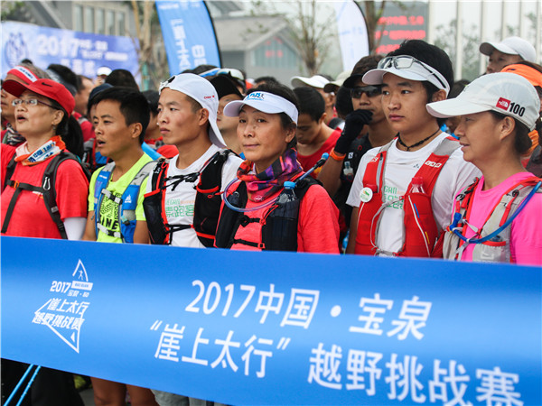 2017中國·寶泉“崖上太行”越野挑戰(zhàn)賽旨在倡導環(huán)保、低碳的全民健身方式,在行走間親近自然,回歸自然,打造國內(nèi)戶外徒步游的經(jīng)典路線,讓寶泉成為戶外運動愛好者的天堂。本次越野挑戰(zhàn)賽共有一千余人參加。其中,來自北京、上海、廣西、貴州、湖北等20個省市的600余名專業(yè)選手參加了50公里越野挑戰(zhàn)組的比賽,500余名戶外愛好者參加了25公里徒步體驗組的比賽。