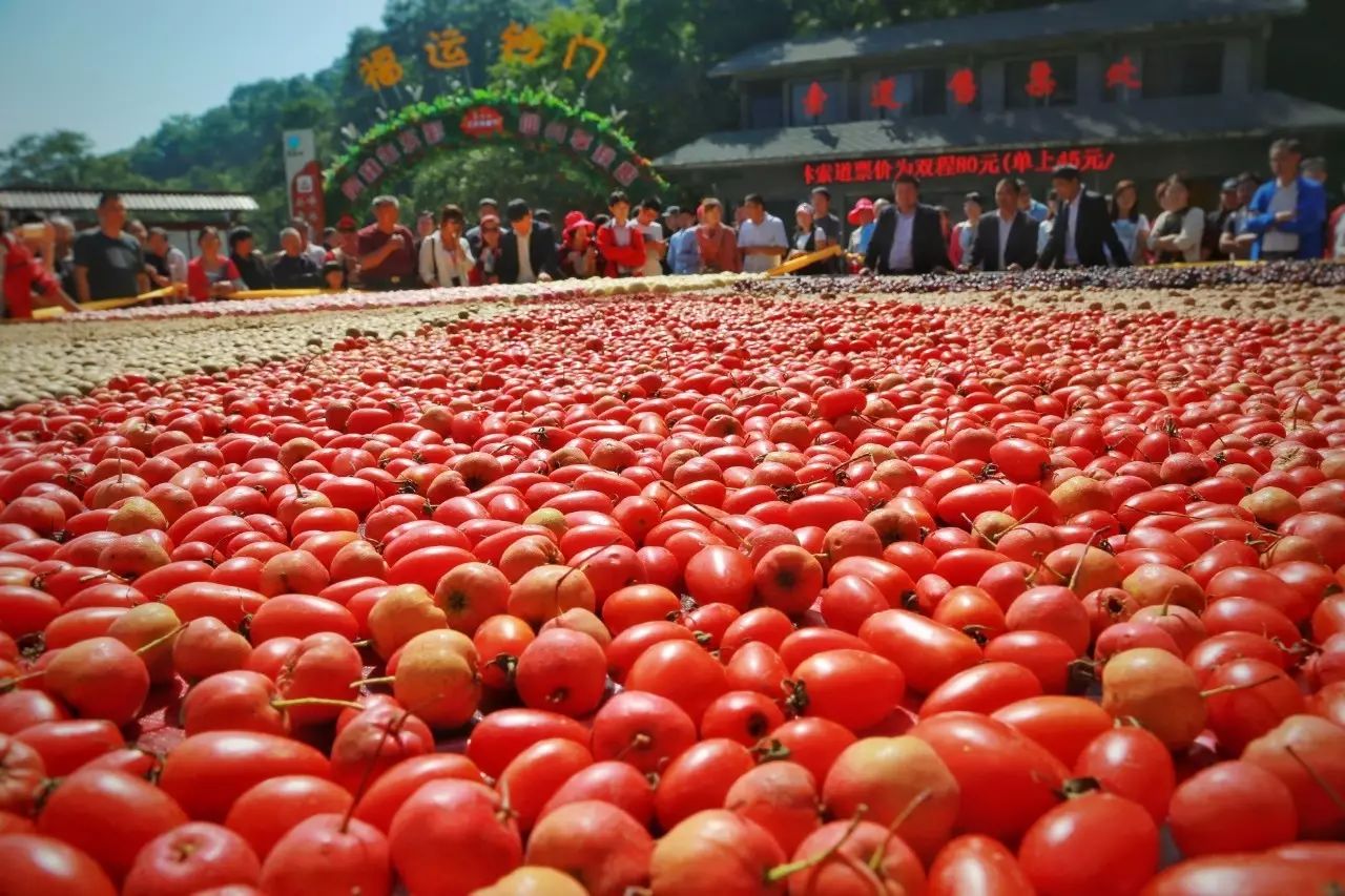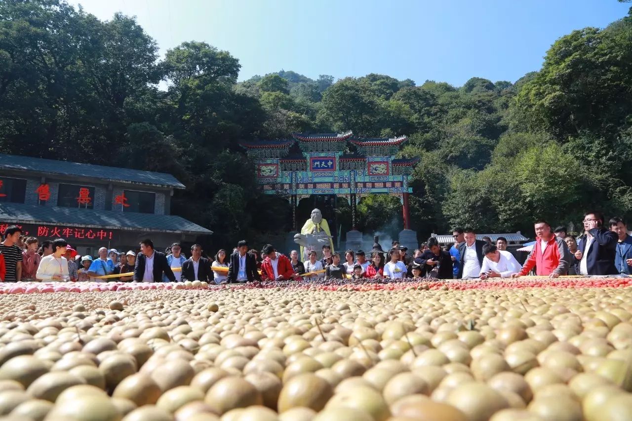 老君山8米果盤慶秋收,3600斤山果免費(fèi)送游客