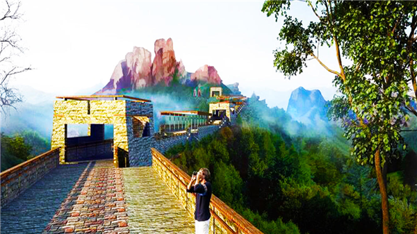 天脊長(zhǎng)城:蜿蜒于山脊之上長(zhǎng)約300米的天脊長(zhǎng)城,氣勢(shì)雄偉,猶如山體脊梁,連通南北,360度將東太行美景盡收眼底。長(zhǎng)城底層的天脊美食街囊括了地方美食和各地名吃,甚是享受!