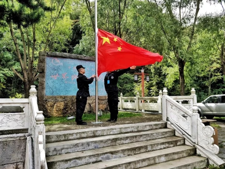 萬紫千紅迎國慶,片片紅葉舞秋風(fēng)。為了慶祝祖國的68周年華誕,洛陽白云山旅游度假區(qū)舉辦了“喜迎國慶”升國旗儀式,在這喜慶的時刻,組織景區(qū)各部門工作人員組成方隊舉行升國旗,由保安隊派出兩名隊員升旗,全體行注目禮。