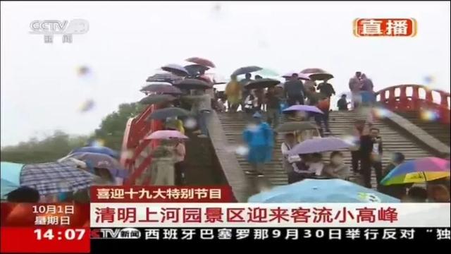 今天下午14:00時(shí),中央電視臺推出的喜迎十九大特別節(jié)目《還看今朝·河南篇》在中央電視臺新聞?lì)l道、央視新聞客戶端、央視移動新聞網(wǎng)、河南衛(wèi)視進(jìn)行了同步直播。節(jié)目中,對清明上河園景區(qū)國慶節(jié)當(dāng)天的游園狀況進(jìn)行了現(xiàn)場報(bào)道。