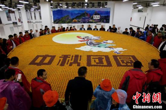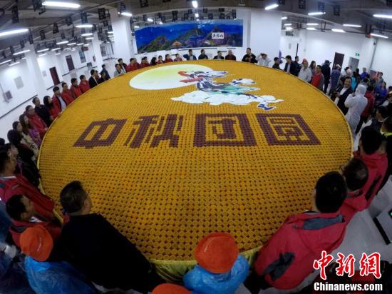 據(jù)了解,8150枚月餅寓意著八月十五,圓形寓意團圓。