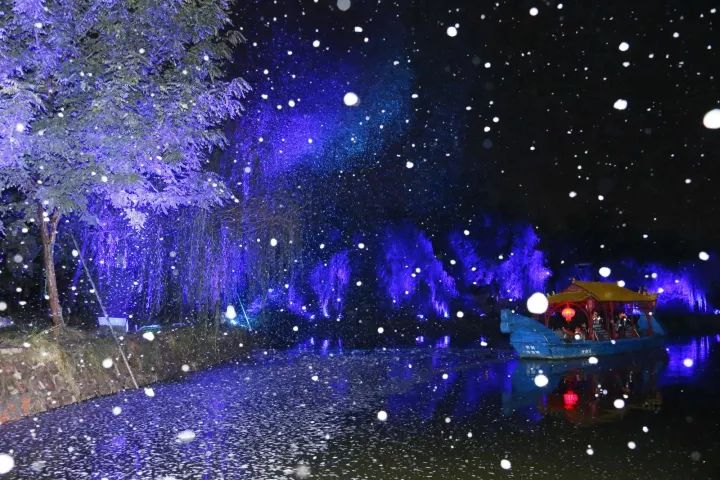 《大宋·汴河燈影》作為一個大型夜游實景工程,由LED七彩虹橋組成、四組20米長水上花排、4組人工飄雪系統(tǒng)、18臺激光投影、20米*8米激光水幕、26朵水上蓮花燈、70米清明上河圖光影畫卷、2000臺LED燈具、7萬米光纜,硬件設(shè)施這么強悍,怎能不美!!!