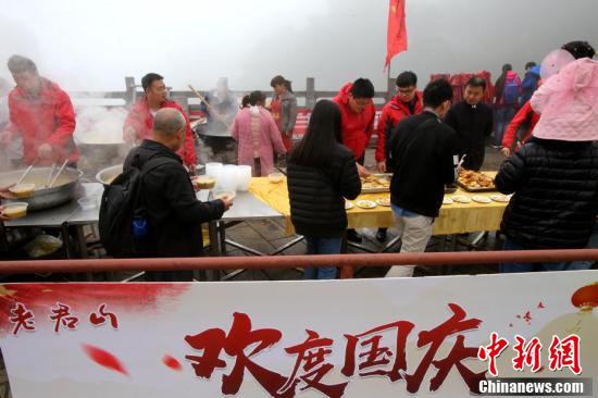 10月5日,老君山景區(qū)游客劇增,景區(qū)推出“1元無(wú)人售賣(mài)農(nóng)家面”,吸引上千名游客前來(lái)排隊(duì)就餐,場(chǎng)面溫馨感人,文明有序。當(dāng)日,景區(qū)在中天門(mén)廣場(chǎng)支起4口大鍋,現(xiàn)場(chǎng)趕制當(dāng)?shù)剞r(nóng)家特色——糝湯面條飯,里面有新鮮的蔬菜,還有一個(gè)金黃煎蛋。在售賣(mài)處,無(wú)人看守,只有一個(gè)收款箱,上面寫(xiě)著“1元午餐,無(wú)人值守,自覺(jué)投幣,自助找零”。此舉一經(jīng)推出,社會(huì)各界給予廣泛好評(píng),一些游客在網(wǎng)上、微信上留言,“想不到,欒川的旅游服務(wù)這么好,這個(gè)國(guó)慶節(jié)到欒川旅游真是值了,以后有機(jī)會(huì)還來(lái)欒川!”