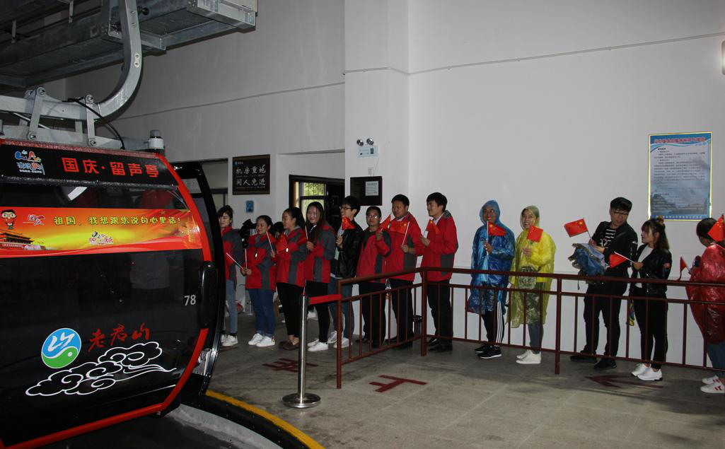 老君山:“國(guó)慶留聲亭”纜車,游客爭(zhēng)相為祖國(guó)送祝福