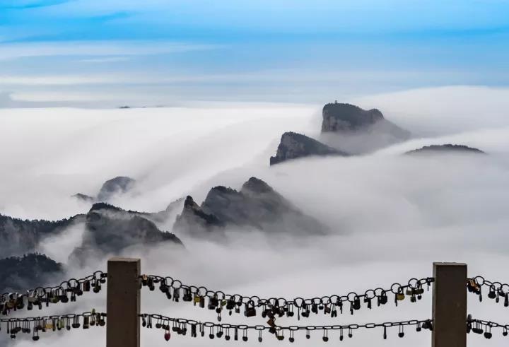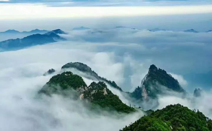 置身白云山間,俯視云層,看到漫無邊際的云,如臨于大海之濱,波起峰涌、浪花飛濺、驚濤拍岸、瞬息萬變……
