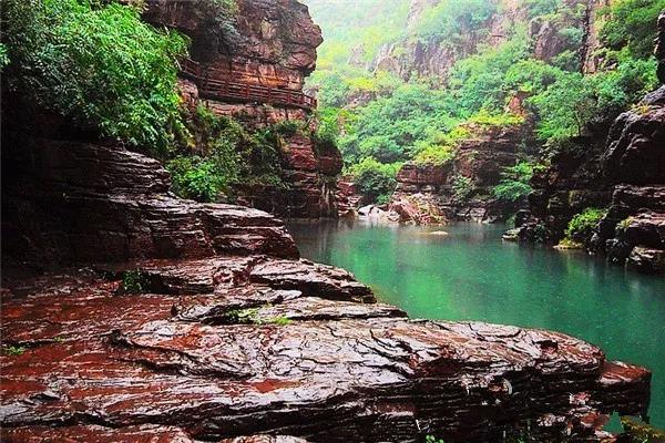 雨中的紅石峽,一切都那么清新,被雨水浸染的石頭顏色更加鮮艷,像是畫(huà)家涂了顏料。