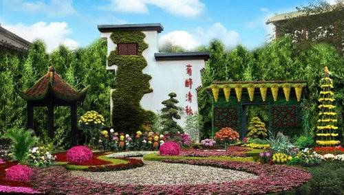 以側(cè)重營造氣氛為主,格調(diào)簡潔大氣、氛圍熱烈。通過各類景觀小品、菊花文化宣傳等形式,突顯菊花園藝特色,展現(xiàn)菊花傳統(tǒng)文化和現(xiàn)代布展結(jié)合之美。