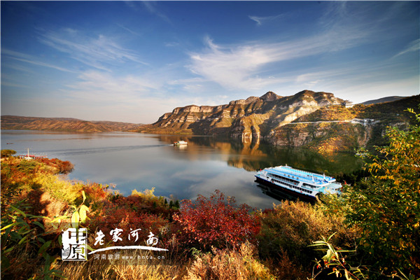 上午:游覽“皇家山水”黃河三峽,乘坐桃花島纜車,俯瞰層林盡染,奇峰疊巒。登桃花島,遠近色彩盡收眼底,道旁群山中艷麗的紅葉多姿多彩,宛如一幅水粉畫鋪掛在群山之中。乘游船覽孤山峽之傲、品八里峽之險、閱龍鳳峽之秀。在行進的過程中兩岸層層疊疊的各色紅葉樹種漸次變換,遠山近黛、如詩如畫的秋日美景可盡收眼底。