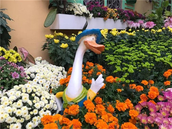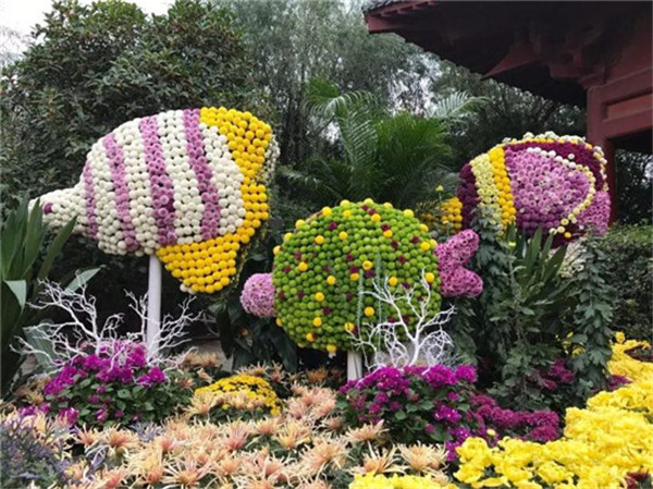 本屆菊展引入國外切花大菊盆栽,創(chuàng)新日式懸崖,雙色韓式小立菊、花紋大立菊、韓式懸崖(水滴形、心形)等栽培形式,運用大花球、大花柱、大花墻、大花藝、大盆栽等大花展模式,新增框靜、輪廓燈、觸摸屏等,宣傳菊文化、供游客留念。