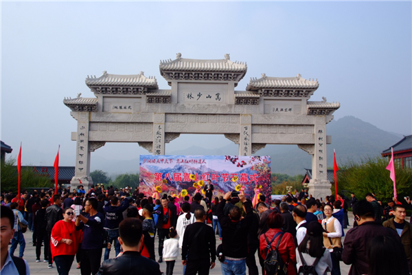 2017年10月22日上午,少林景區(qū)游客中心廣場上彩旗飄飄,一派熱鬧的景象,第八屆嵩山紅葉節(jié)在游客的期待中開幕,本屆嵩山紅葉節(jié)開幕式吸引了來自全國各地近萬名游客的積極參與,省內(nèi)平面、網(wǎng)絡(luò)及電視、電臺(tái)近20家主流媒體深入景區(qū)全面報(bào)道,5名10萬+粉絲直播大咖全程直播紅葉節(jié)開幕盛況,各地的攝影愛好者齊聚嵩山,一同看功夫、游少林、賞中原醉美紅葉。