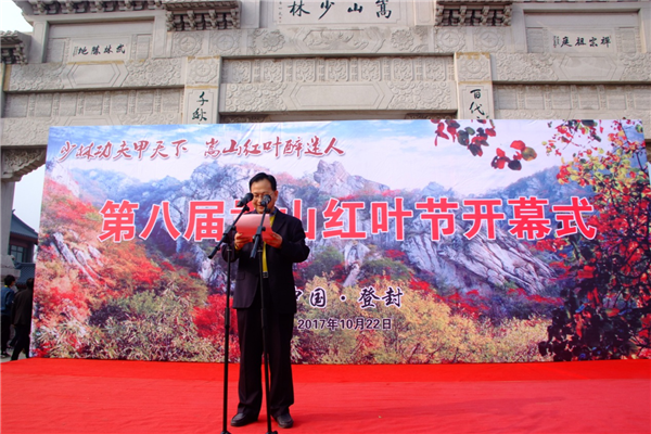 (圖:第八屆嵩山紅葉節(jié)開幕式上景區(qū)領(lǐng)導(dǎo)致辭)