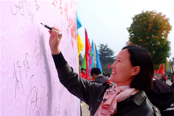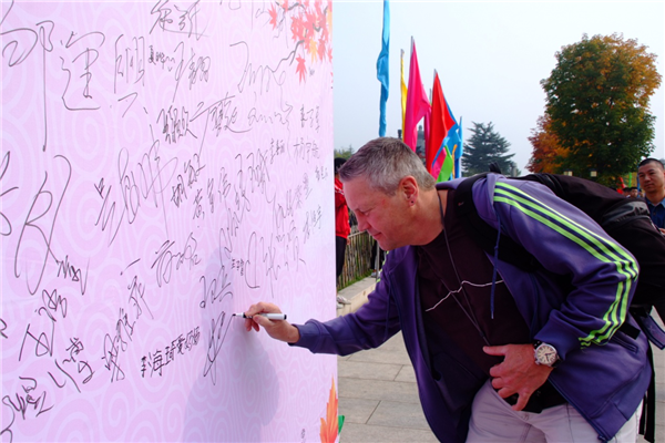 (圖:中外游客熱情參與嵩山紅葉簽名活動(dòng))
